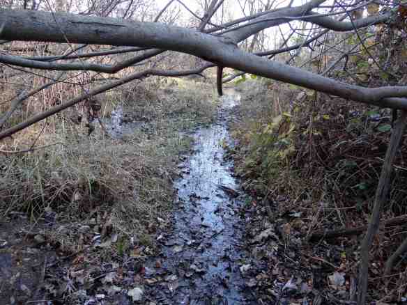 Winter creates muddy conditions, limiting access to side trails between the ponds. Photo by Jon Aull.